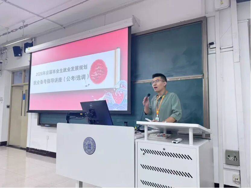 2025年9月20日晚,由党委学生工作部职业发展与就业指导中心主办的“2026年应届毕业生就业发展规划就业备考指导讲座”在教二101教室成功举办。