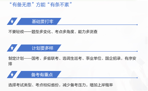 蒋老师给同学们提出了几点选调生的备考建议:第一是分析题型特点,助力针对性备考;第二是科学方法学习,可以降维打击所有题目;第三底层能力提升,系统训练巩固;第四是进行步骤优化周期训练,真正提升做题速度;第五是实战策略,实现成绩最大化。