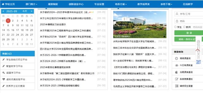 它是四川农业大学教务处的快捷入口,在这里有教务处的部分功能,最重要的功能之一是查询自己的考试成绩哦。