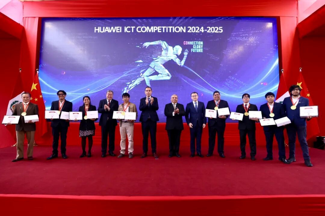 招待会设置了华为信息与通信技术大赛(ICT)为秘鲁参赛学子颁奖环节,秘鲁国会主席赫利、交通通信部长桑多瓦尔和华为公司代表张鹏为获奖者颁奖。赫利在颁奖辞中表示,秘中友谊源远流长,两国文明深入交融。双方同为文明古国,始终相互尊重、相互成就。此次来自秘鲁国家工程大学的2支团队在来自48个国家和地区参赛队伍的激烈角逐中取得佳绩,这不仅是对秘中友谊的礼赞,更是对青年力量的肯定。